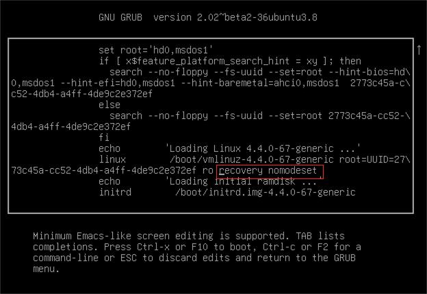 把recovery nomodeset删除,换成quiet splash rw init=/bin/bash