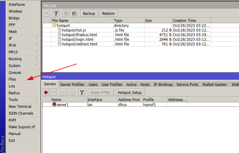 我们可以在files里面看到路由自动生成的模板文件,全部删除,上传计费的hotspot文件