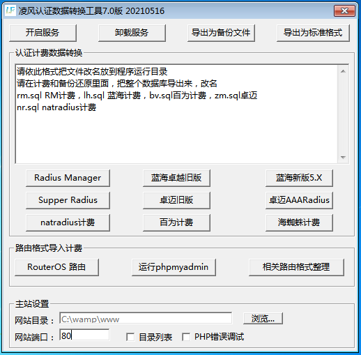 我们把各计费的数据库导出为sql格式,各计费都有提供备份数据库的功能,这个备份里面就是sql,改名后放入c:\wamp目录里面。