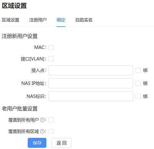 接入点,NASIP,NAS标识可以指定并且绑定,这样新用户如果在错误的NAS上面上线是不成功的,如果填入的值为空,只勾上了绑定,表示第一次上线成功后取值再绑。