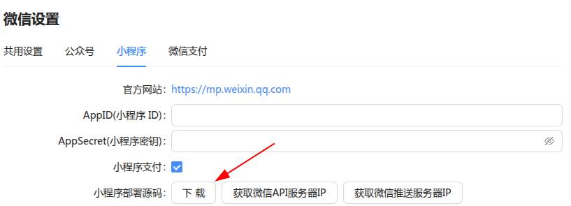 我们下载出小程序部署源码,没有填前面共用设置里面的URL(服务器域名)的和不是https访问的计费则这个下载按钮是灰色不可下载。