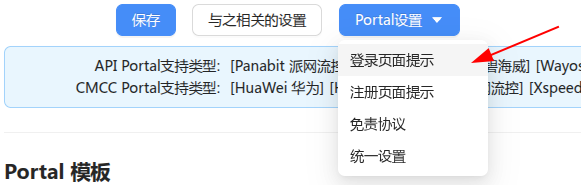 全部Portal页面开启填到登录页面提示里面。