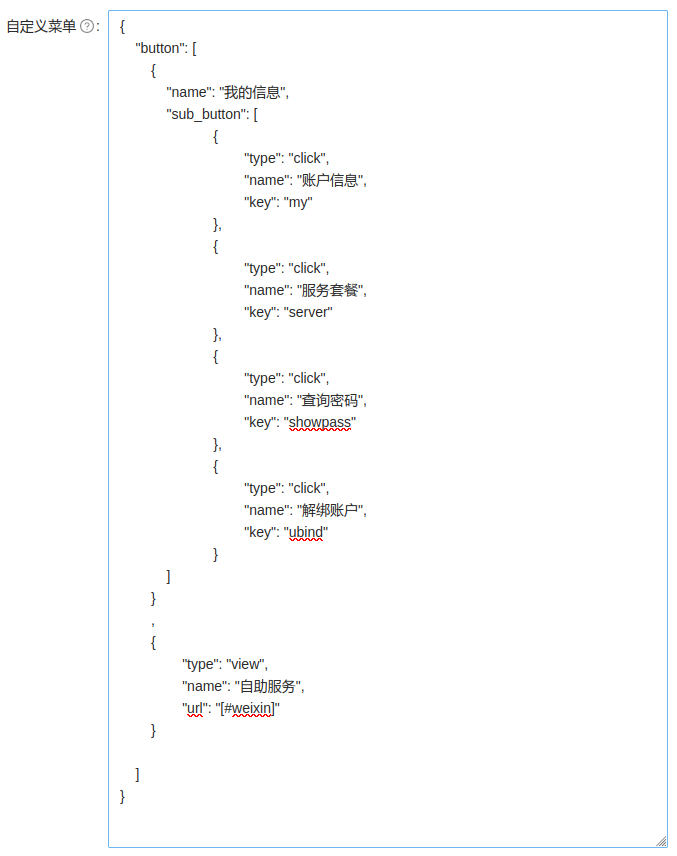 其中[#weixin]为自动登录到自助平台网址,因为是变动的所以用变量代替,不要更改这个。