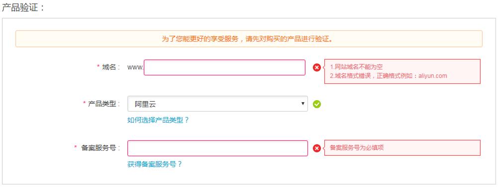 产品验证,去取得一个备案服务号,选择阿里云。
