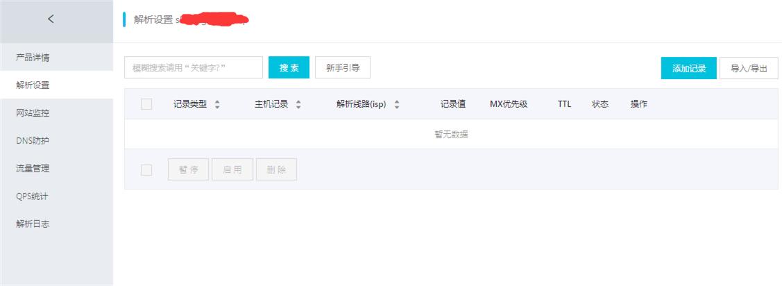 我们进入域名控制面板,把所有自带的解析全部删除,清空。
