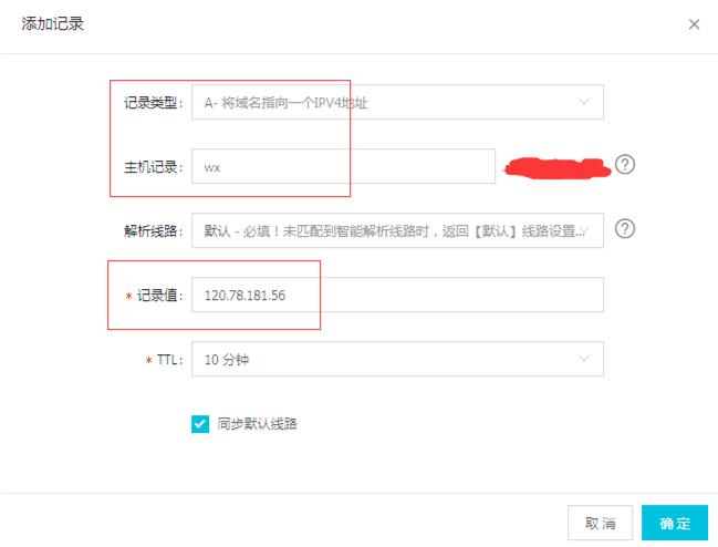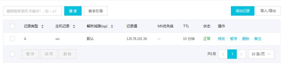 比如凌风的是wx.lflflf.cn,那么我们只要在lflflf.cn的控制面板下面清加wx,再填上记录值IP为云服务器公网IP便可。